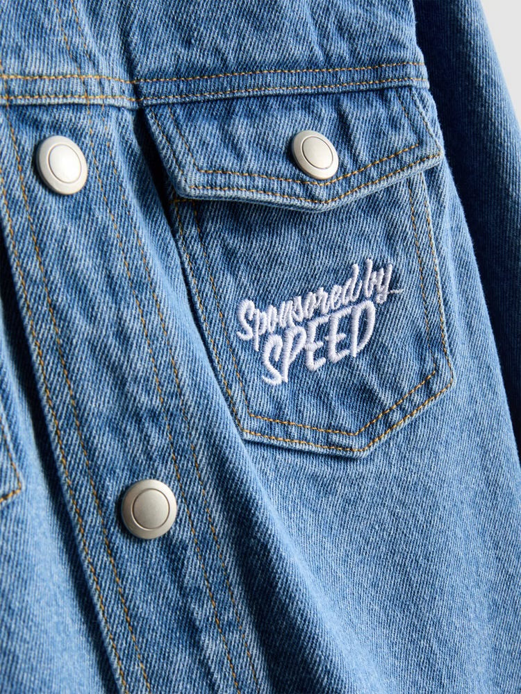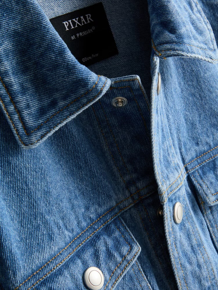 Una chaqueta vaquera con cierre de popper con un diseño de Disney Pixar's Cars