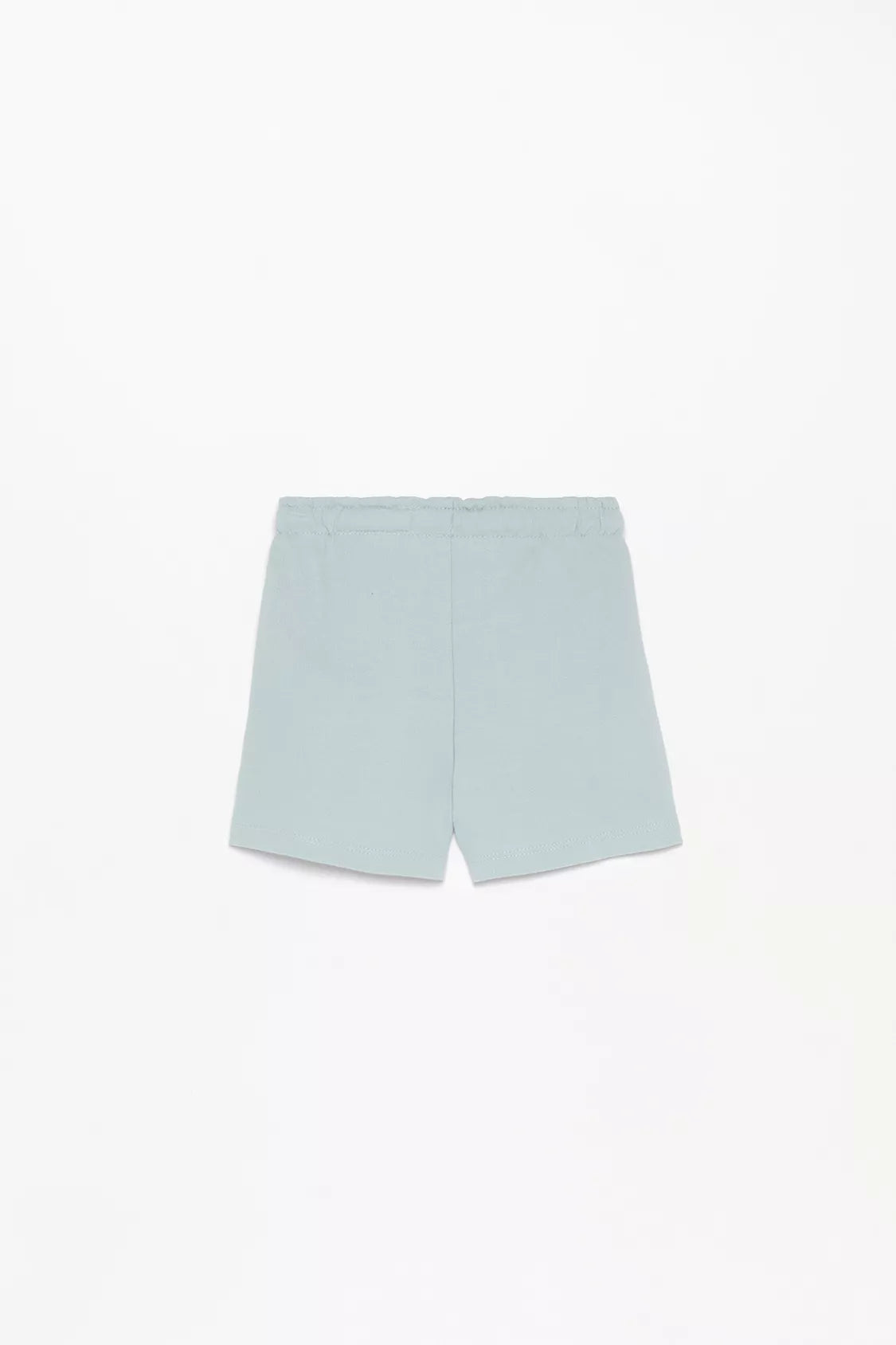 Conjunto compuesto por una camiseta de manga corta y cuello redondo con maxiprint delantero con detalle de texto con relieve. Y una bermuda, con pequeño print, de cintura elástica y cordón de ajuste. El conjunto de Mickey Mouse ©Disney está confeccionado en un tejido 100% algodón.