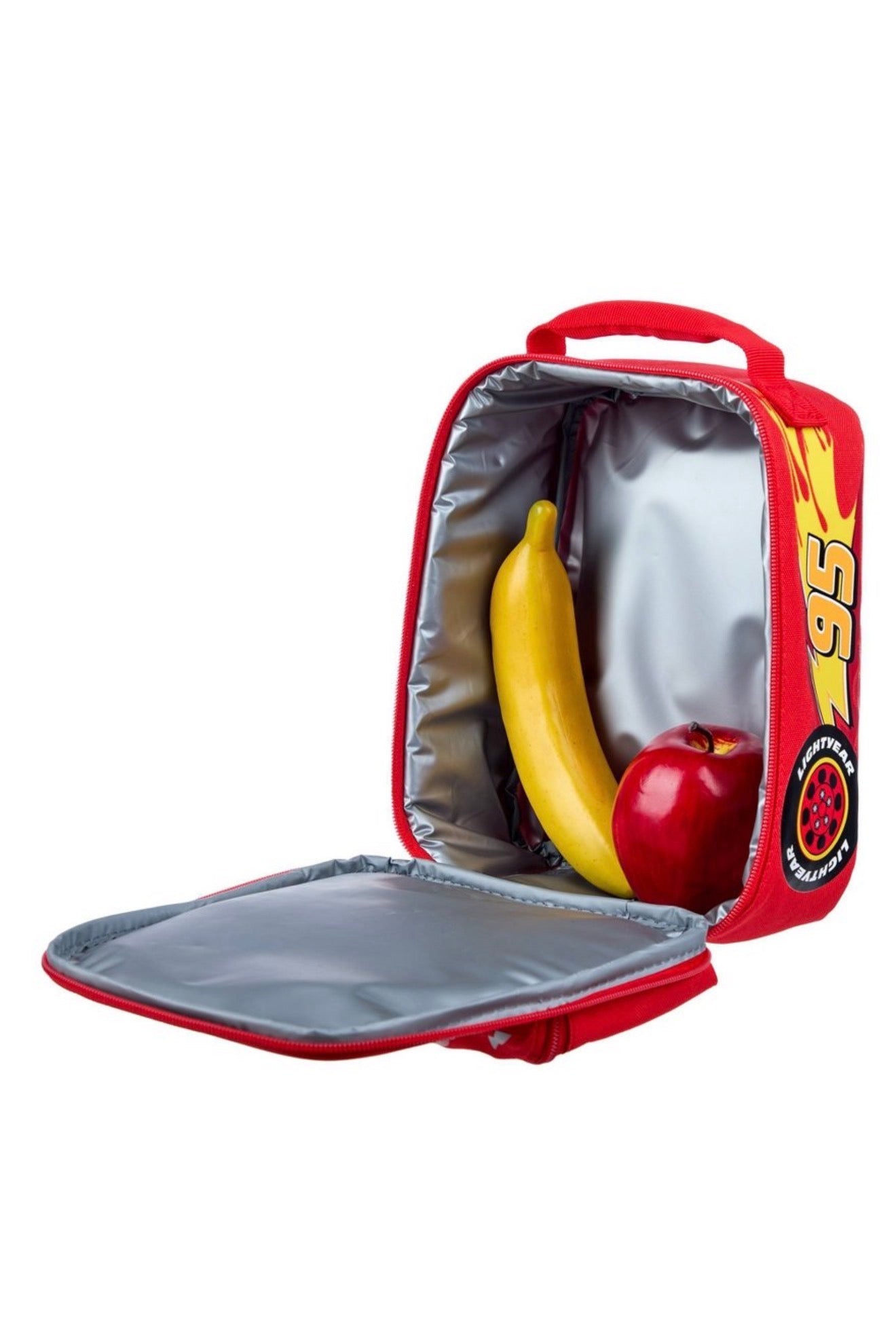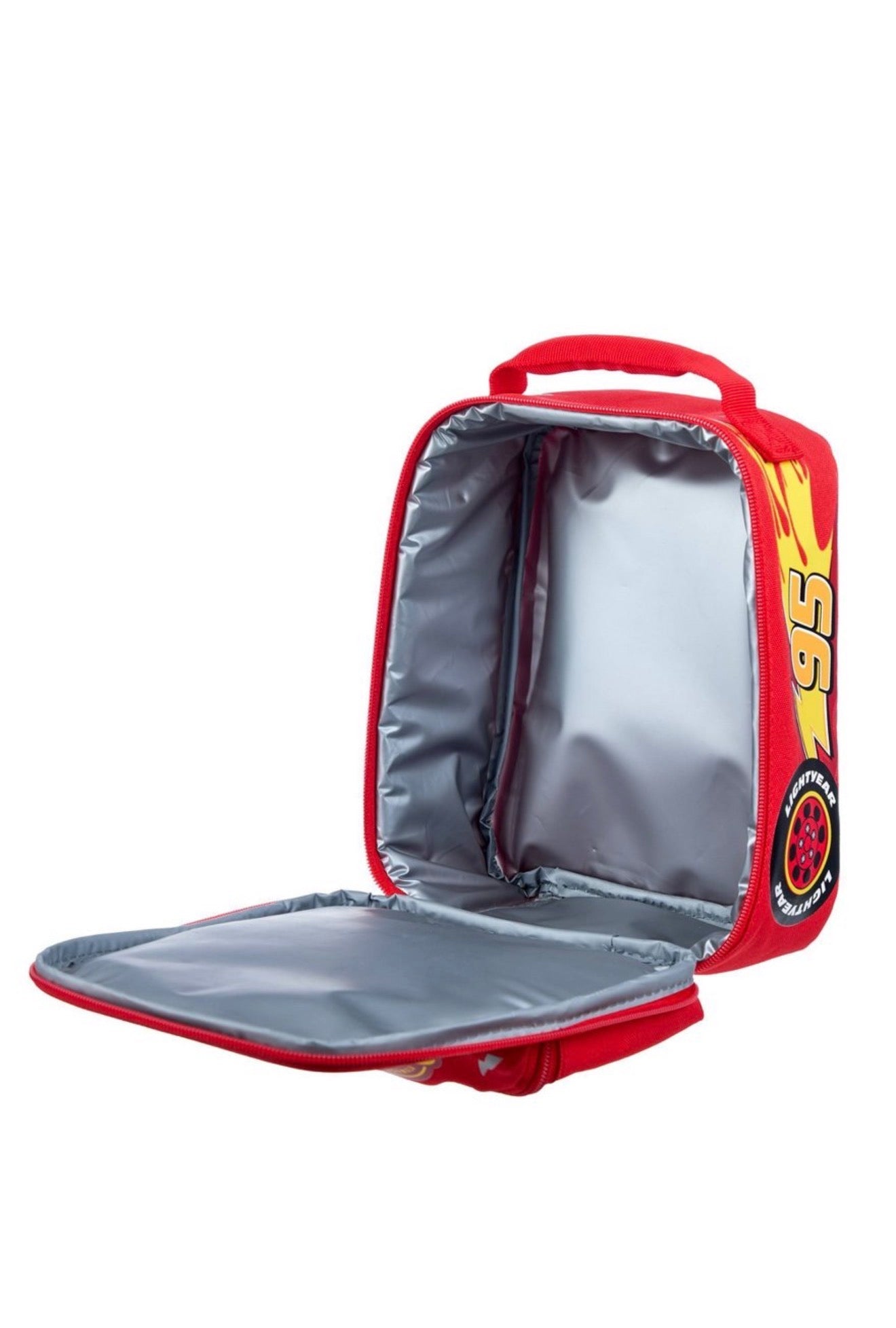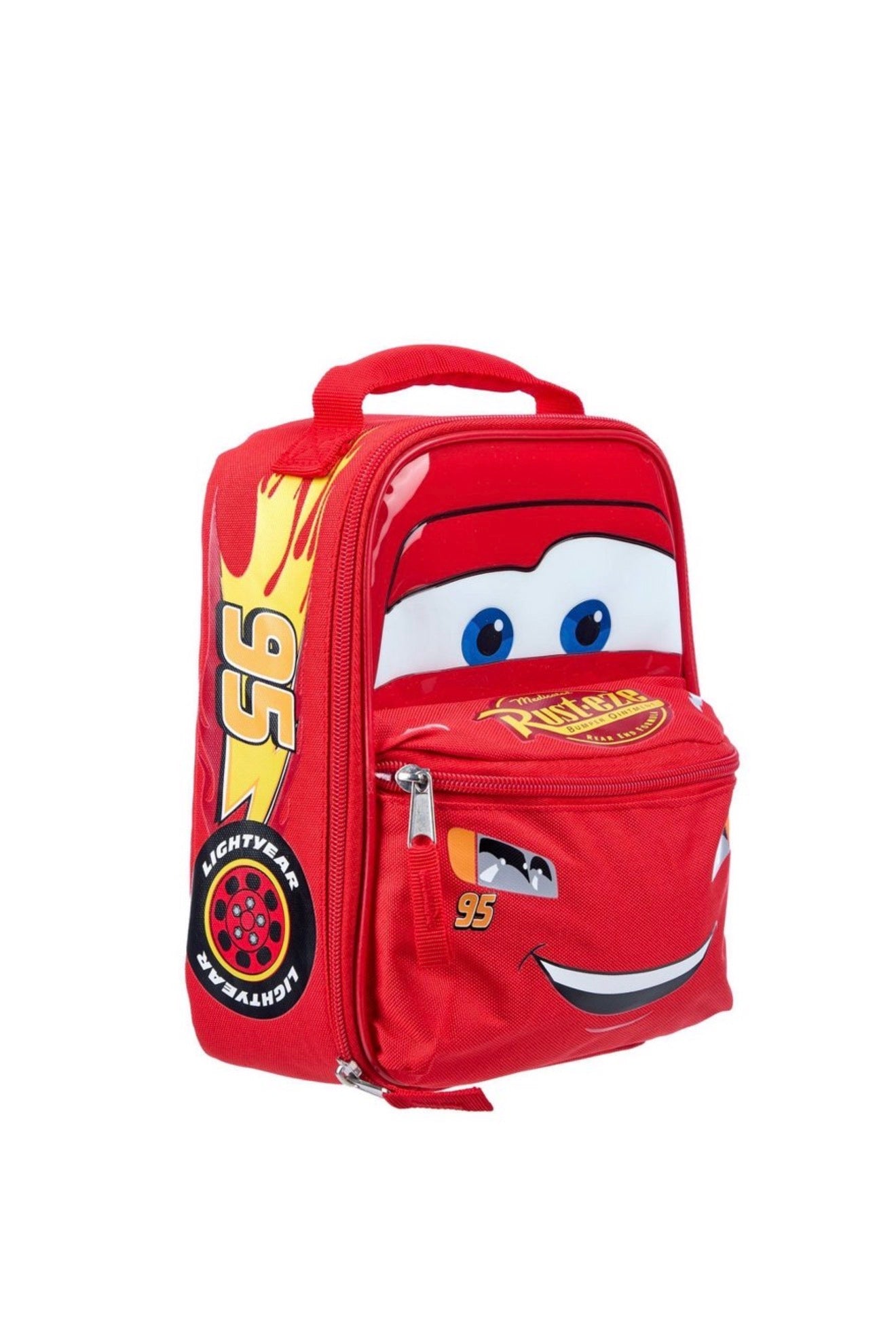¡Acércate a la hora de la merienda con esta bolsa de almuerzo aislada de Rayo McQueen! Perfecto para mantener los bocadillos frescos y frescos, cuenta con un amplio bolsillo frontal con cremallera, un amplio bolsillo trasero y un práctico asa superior para facilitar su transporte. ¡Imprescindible para las aventuras cotidianas de cada pequeño corredor!