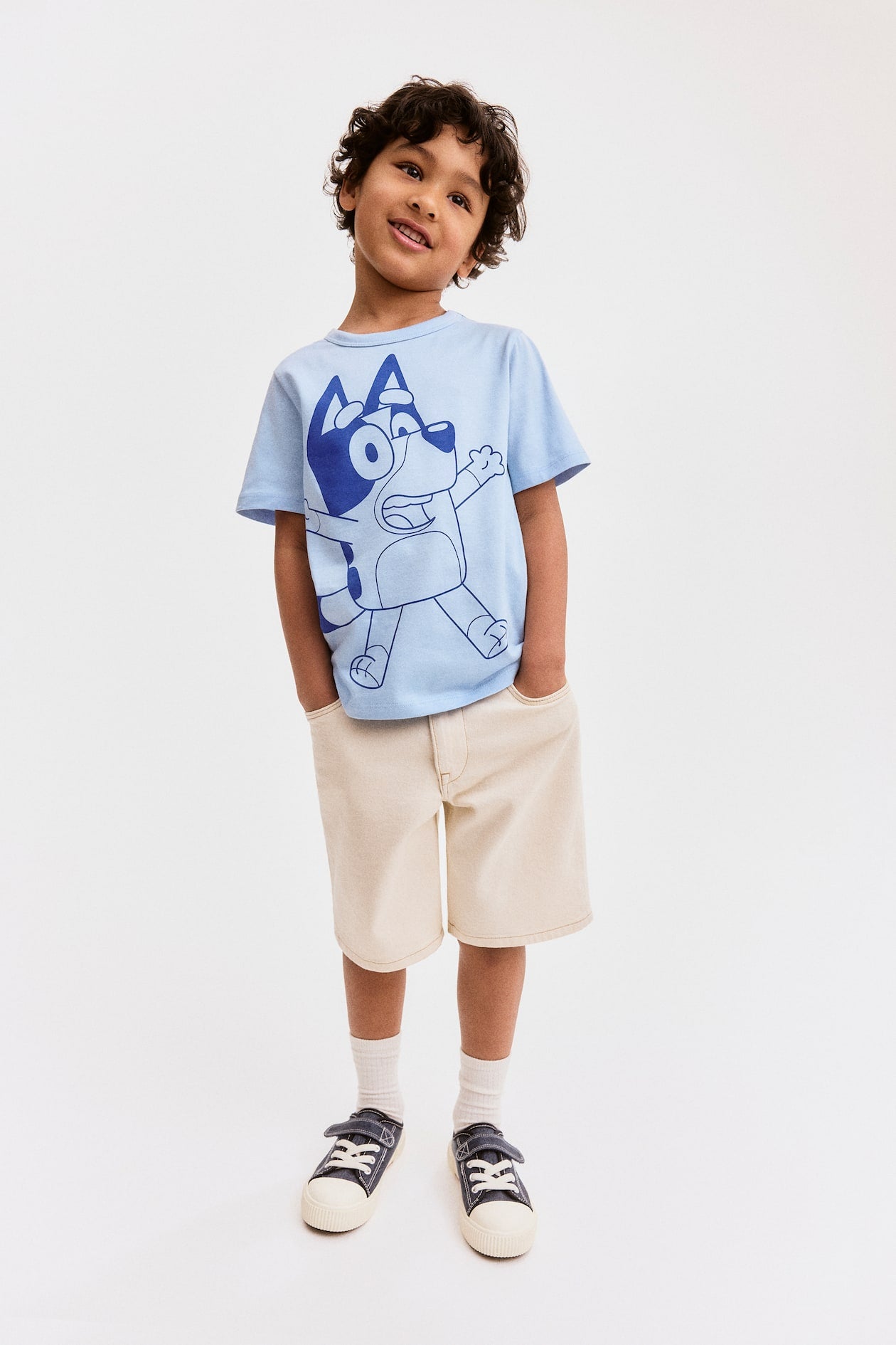 Camiseta clásica en punto de algodón con motivo estampado y cuello fino ribeteado.