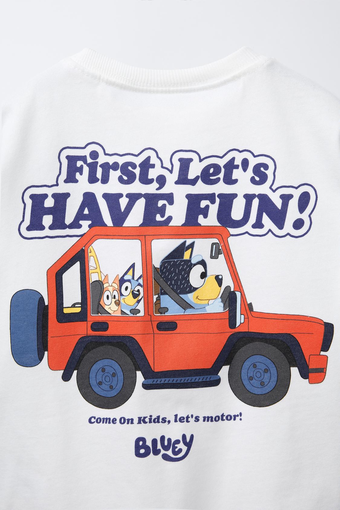 Polera Bluey Viste a tu pequeño con estilo y diversión. Esta polera presenta el icónico diseño de Bluey © LUDO STUDIO en la parte frontal y trasera, perfecto para los fanáticos de la serie. Confeccionada con cuello redondo y mangas cortas, ofrece comodidad durante todo el día. Ideal para jugar, explorar y disfrutar de aventuras sin límites. Una prenda que combina calidad premium con el personaje favorito de los niños.