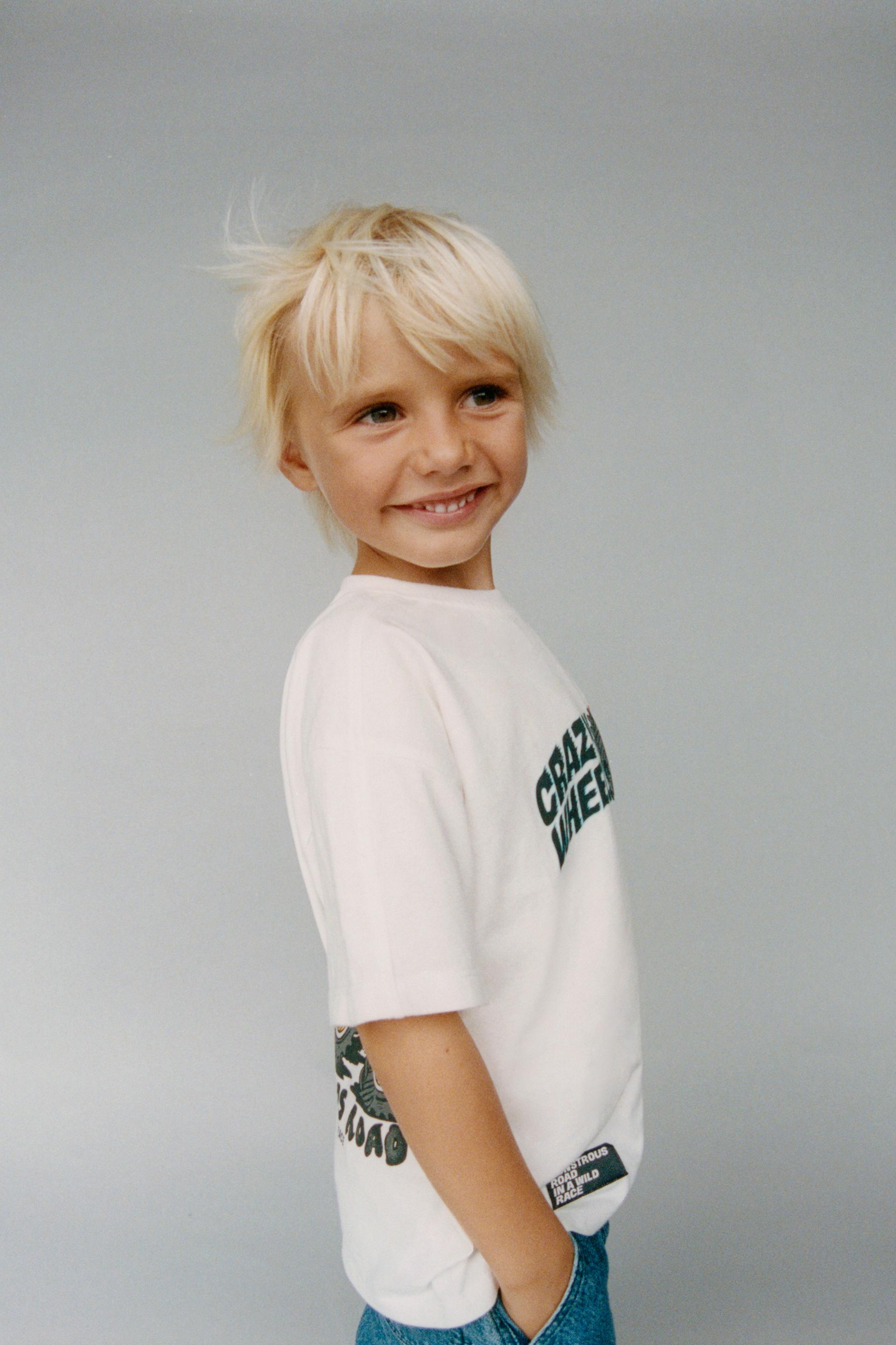 Camiseta con cuello redondo y manga corta. Estampado coches en delantero y espalda. Tejido 100% algodón.