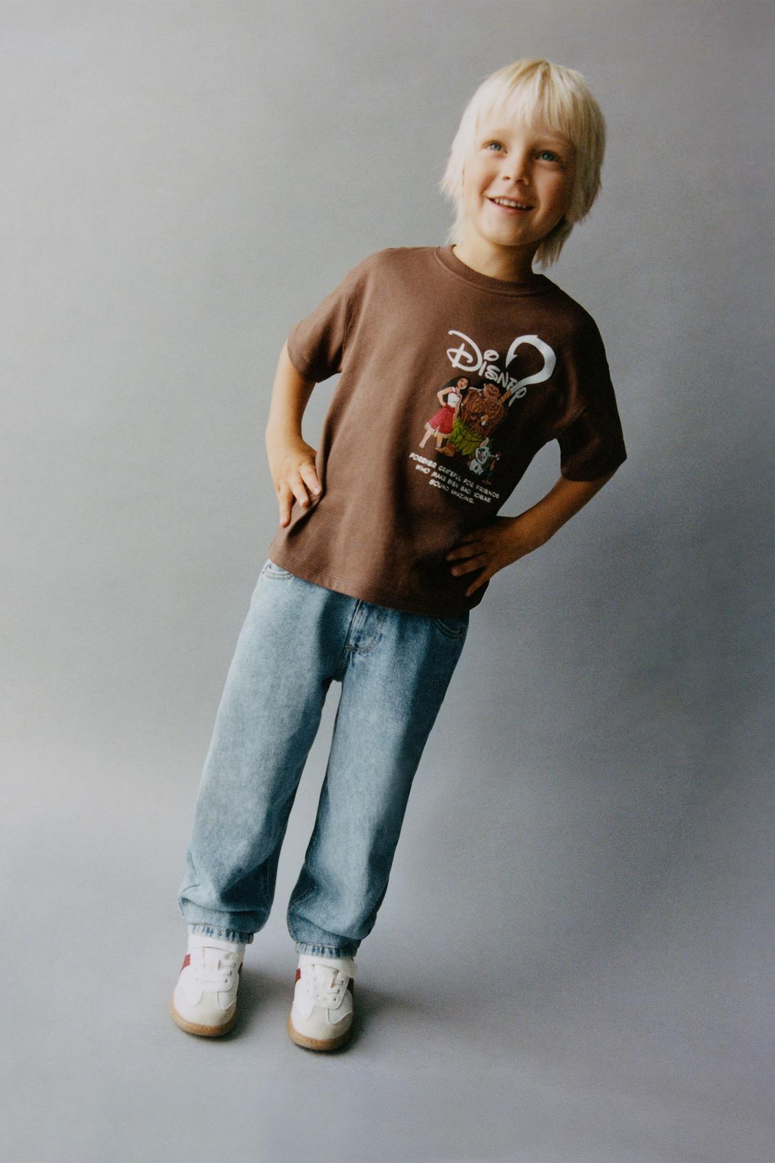 Camiseta con cuello redondo y manga corta. Estampado Moana © DISNEY en delantero y espalda. Tejido 100% algodón.