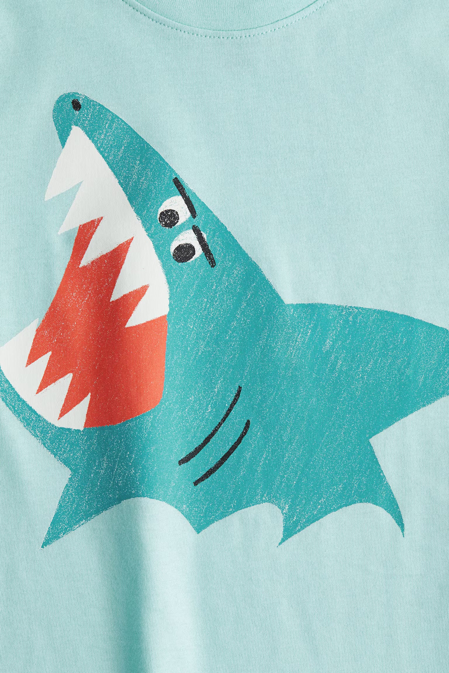 Camiseta clásica en punto suave de algodón con estampado. Modelo con cuello redondo ribeteado en canalé y bajo recto.