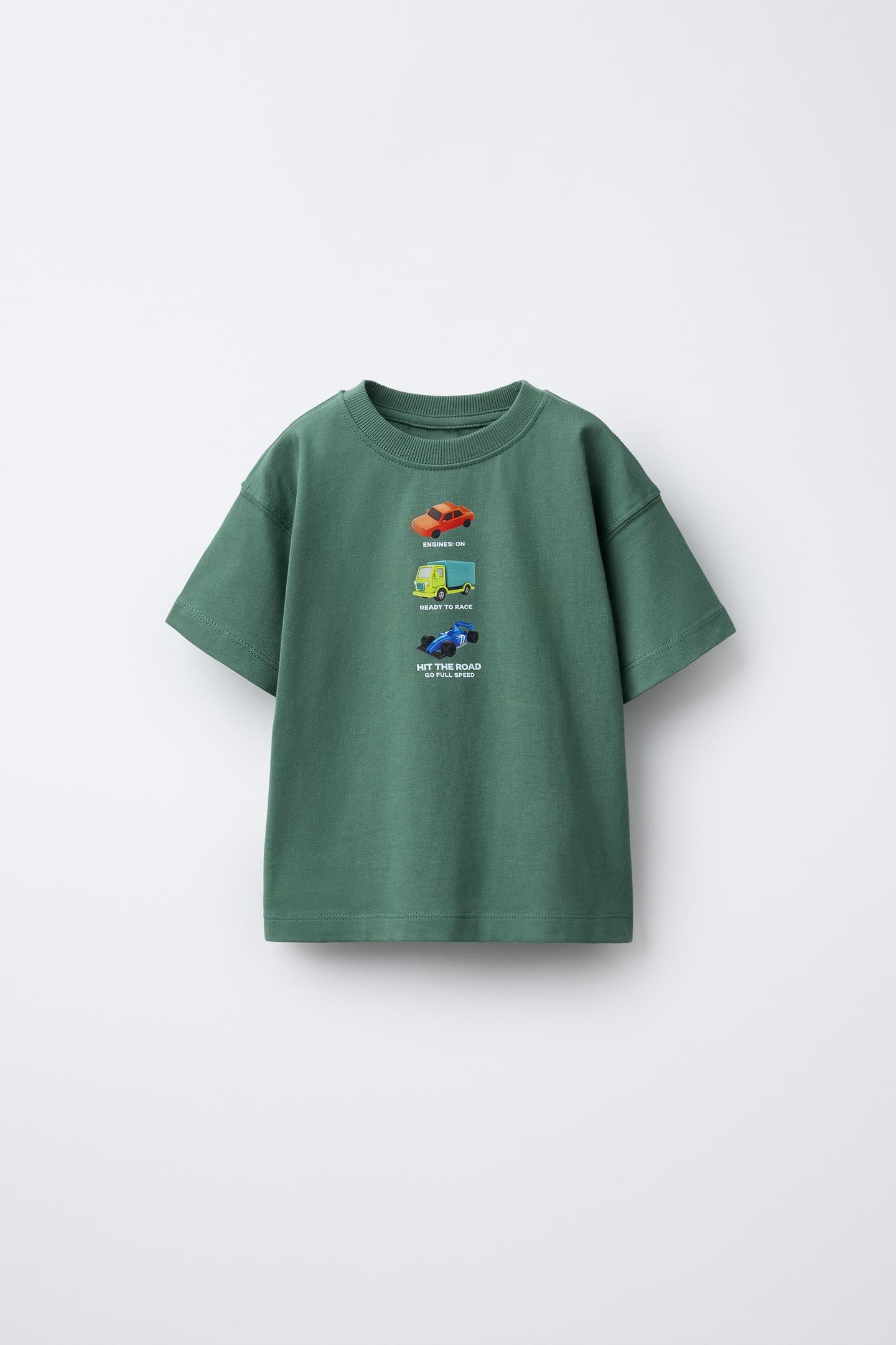Camiseta con cuello redondo y manga corta. Estampado en delantero. Tejido 100% algodón.