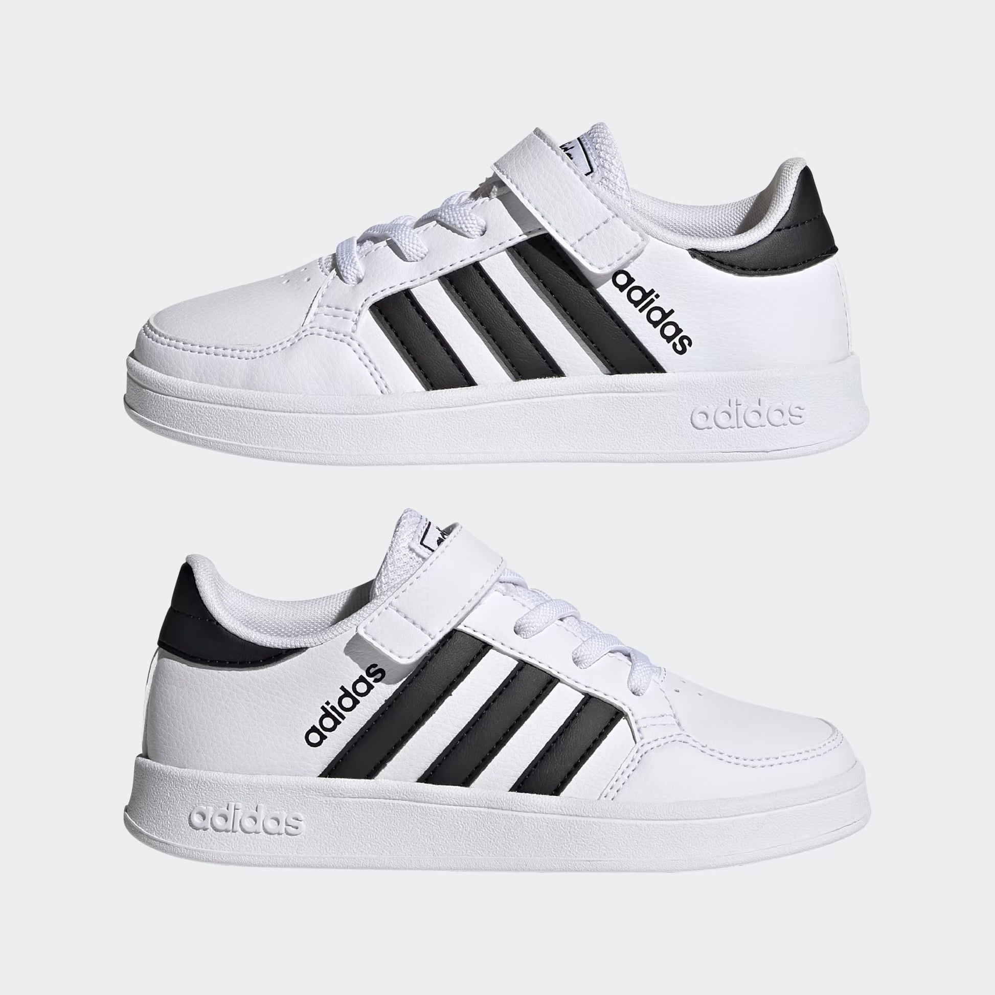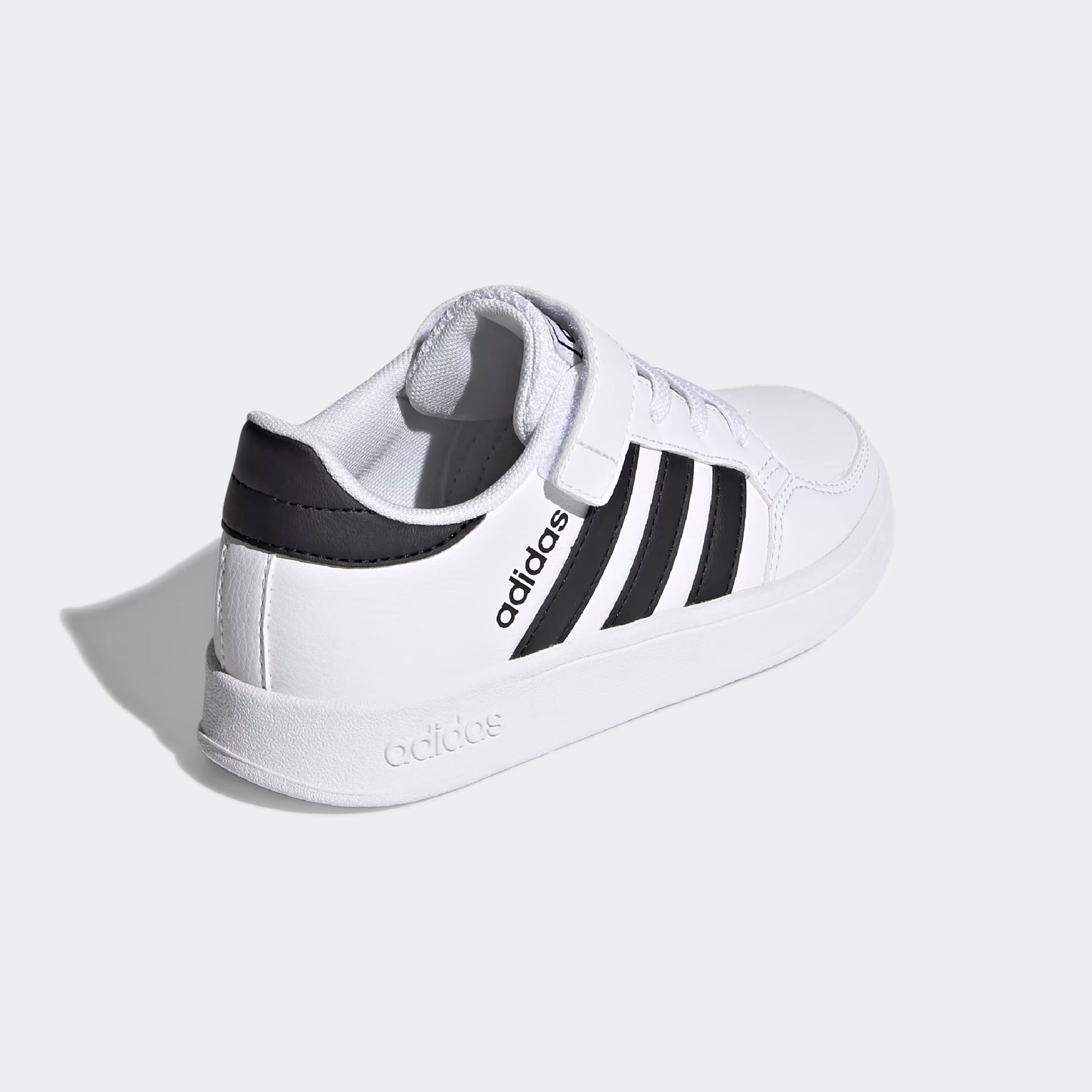 Este diseño de inspiración tenística acompaña a tu peque en su rutina diaria. No importa si sueña con ser la próxima estrella del tenis o si solo quiere presumir de estilo, esta zapatilla adidas le encantará. El cierre de cordones le ofrece una gran sujeción y la correa de velcro le aporta un mejor ajuste.